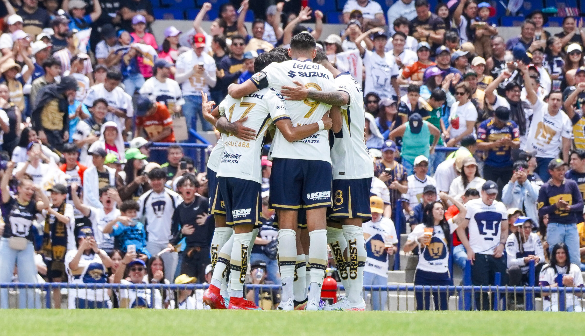 El plantel de Pumas tras el gol en CU. FOTO: Mayra Rodríguez